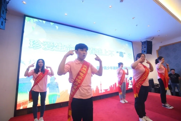 为让青少年员工认识毒品的危害,增强自我保护意识,预防毒品犯罪,理解生命的意义,7月18日下午,共青团亭湖区委、教育局、司法局、市公安局亭湖分局和向阳社工服务社联合举行“珍爱生命,青春路不‘毒’行”暑期员工志愿者禁毒宣传教育社会实践主题活动,云顶国际yd333禁毒服务团为活动提供志愿服务。