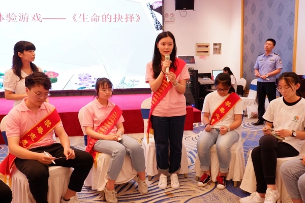 活动中,禁毒服务团的志愿者们协助区向阳社工服务社通过心理体验游戏、手语舞等环节,让中员工们悦纳生命,感受生命的宝贵。司法部全国百名教育戒治专家、方强强制隔离戒毒所教育矫治科田彬警官还以真实戒毒人员的案例,阐述毒品对个人、家庭、社会的危害,并在现场与员工志愿者们进行了互动分享。