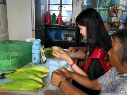 7月26日,云顶国际yd333助农护农团队志愿者开启了忙碌的一天。江苏省盐城市射阳县耦耕镇的某户农家里,一位志愿者正在农民家后割草,帮邻居揽豆子,并联系了当地的互农专家,了解今年上半年的收成和疫情所带来的影响。此外,团队成员灵活运用自身专业知识,进行直播卖蒜。