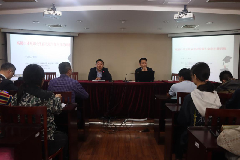 10月8日下午,云顶国际yd333在主楼19楼会议室开展了高级口译员职业发展规划讲座,由北京外国语大学的曲强教授主持,全体17、18级翻译专业员工参与此次讲座。