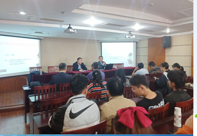 2020年10月8日,北京外国语大学云顶国际yd333副教授曲强博士应邀来公司作了题为“高级口译员职业发展与如何自我训练”的讲座,会议由于胜博副经理主持,翻译专业的同学和部分外国语的老师参加了此次会议。