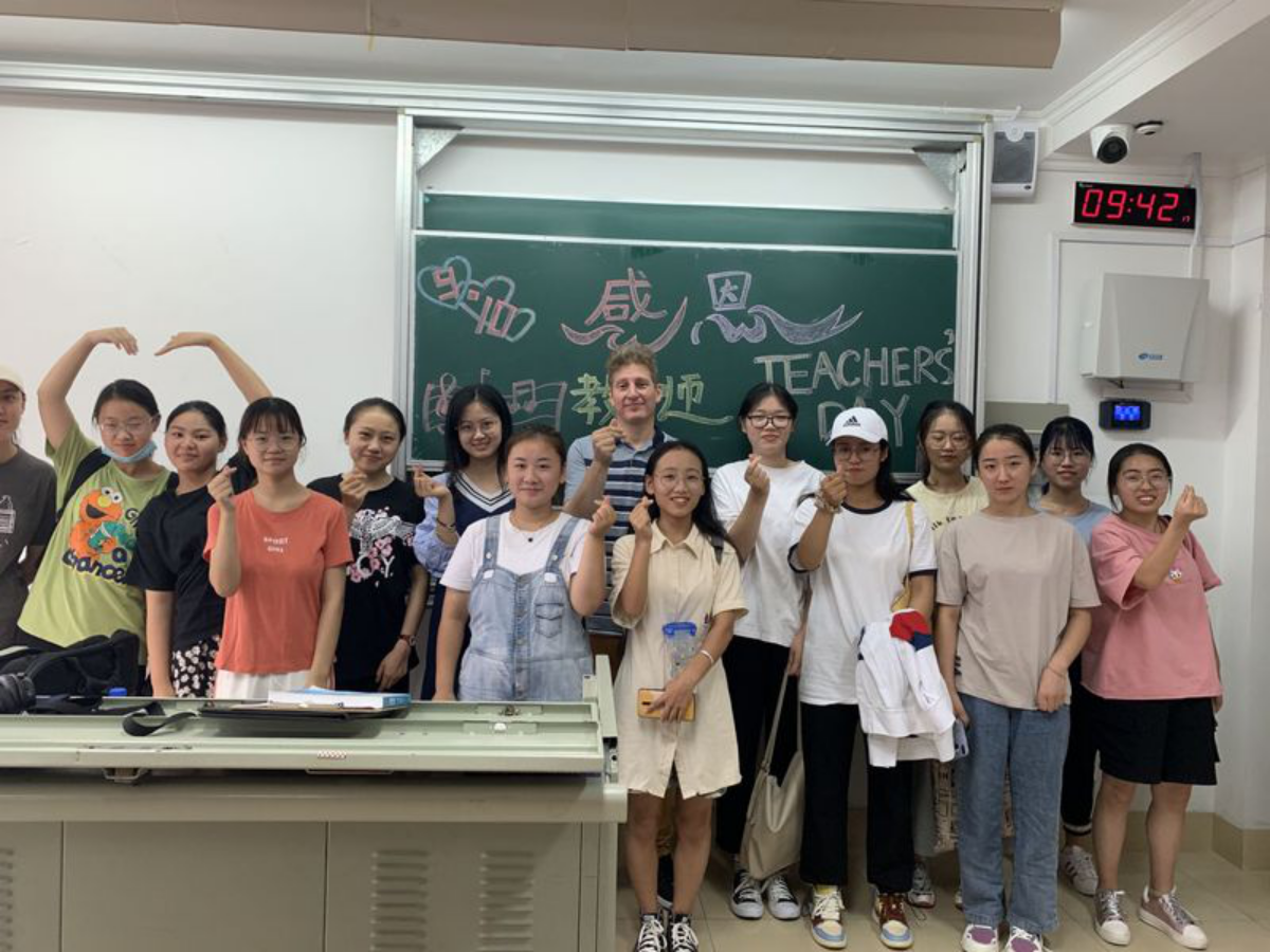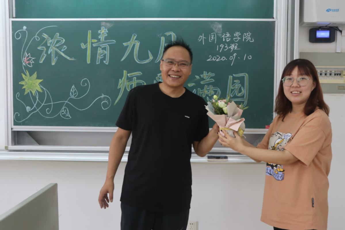 各班同学还纷纷在上课教室制作了教师节主题板报,给老师们送上了节日惊喜。“我们每个班都提前知悉了任课老师的课表,让每位老师走进不同教室都能看到,全院同学一起把祝福接力下去。”