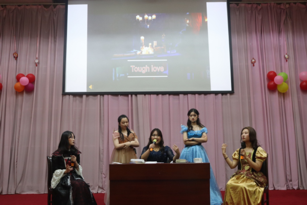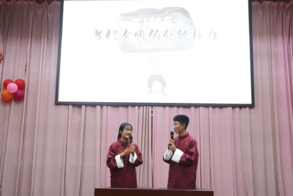 公司党总支书记朱京凤致辞,深情祝愿新生学有所成、月圆人圆,鼓励新时代青年坚守家国情怀,为实现中国梦努力奋斗。公司为2020级每位新生送上了月饼、水果及花生菱角作为节礼。颇具公司专业特色的音乐剧《后妈茶话会》、默剧《小人舞》等引得现场笑声连连、气氛热烈。脱口秀《现代女性的外貌压力》、流行舞《Ice cream》、古筝独奏《战台风》等节目轮番上演,精彩纷呈。话剧《等你回家》、朗诵《中华魂》、原创歌曲《战疫》、舞蹈《最后的名单》等用歌声凝聚抗疫精神,用舞蹈诠释爱国情怀,感动了在场所有师生。