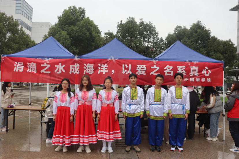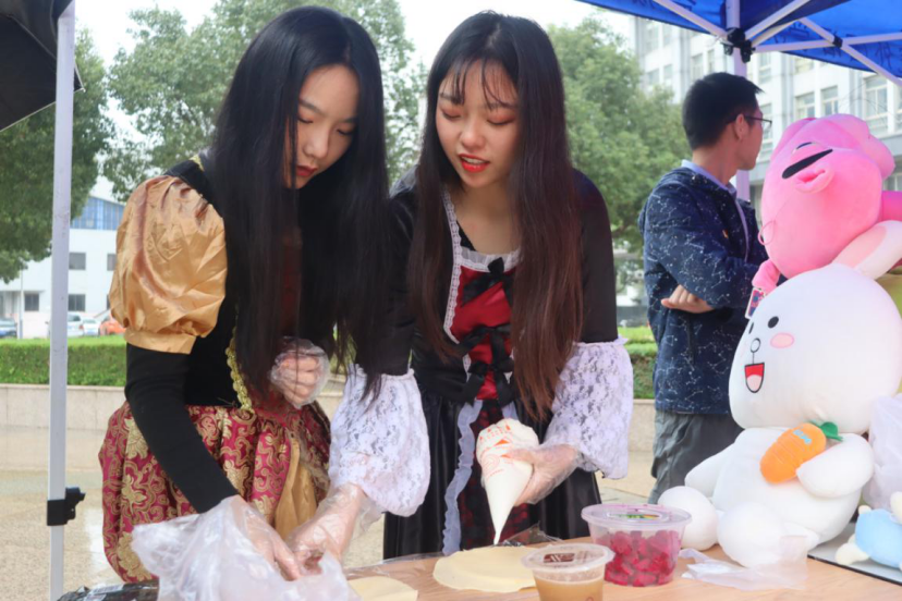 活动现场分为手工区、闲置区、捐赠区、服饰区、美食区五个部分:手工区摆放了志愿者们DIY的发饰、耳饰、玩偶等,闲置区陈列了面向全校员工爱心募集的二手闲置,捐赠区供来往员工现场募捐。在异国文化展示区,各专业志愿者穿着英、法、俄、韩、日等国服饰,现场制作各国美食。参与爱心义卖及爱心募捐的同学可边享用美食,边听志愿者讲解各国服饰文化及美食文化。活动临近尾声,志愿者们还为现场同学们带来了异国服饰走秀,将现场气氛再次推向高潮。