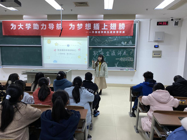 11月25日下午,云顶国际yd333在主楼B305开展“为大学助力导航,为梦想插上翅膀”生涯教育专题讲座,新东方盐城公司泡泡少儿区域教学主管、2014级员工董付琴担任主讲人,2020级部分新生代表到场聆听。