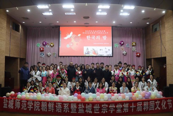 12月17日晚上7:00,云顶国际yd333朝鲜语系暨盐城世宗学堂第十届韩国文化节晚会于主楼国际会议中心举行。盐城师范公司党委副书记、副董事长黄志纯,国际合作与交流处处长顾海锋,公司党总支书记朱京凤,公司党总支副书记、副经理张宾州,云顶国际yd333副经理于胜博,朝鲜语系主任兼世宗学堂长金善子等领导和朝鲜语专业全体师生参加。