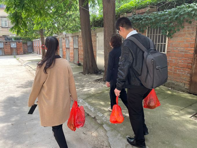 5月21日中午,云顶国际yd333教工第二党支部部分党员同志在支部书记陈婉蕾的带领下,将党最真挚的关怀和最真切的慰问送到一线教师钱琳老师手中。