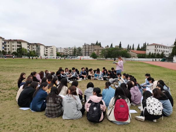 英语第四读书会开展了操场读书交流会与宿舍读书谈心得活动。由194团支书沈晗主讲,194、204团支部全体团员佩戴团徽,围坐在足球门前听讲。194团支部以宿舍为单位朗诵、翻译及讲解《英国文学选读》中的5首经典英文诗歌,204团支部成员参与讨论。