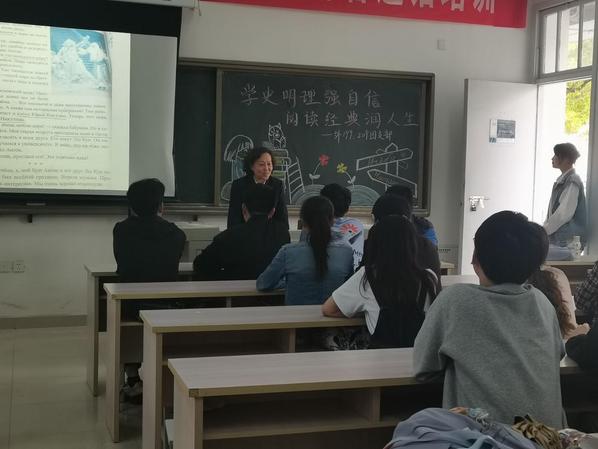 由199、209班组成的俄语读书会与陈婉蕾老师进行了一场读书盛会。陈婉蕾老师推荐的专业书籍是《走遍俄罗斯》。同学们划分成小组依次轮流分享学习心得,对专业书本内容发表感想,形成简洁明晰的语法体系结构并热烈讨论。