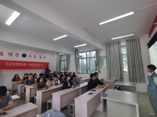 英语第七读书会开展了由英语专业老师陈振媛主持的“师生对话交流”读书分享会。陈振媛老师分享《How To Read A Book》,并根据书籍内容为大家阐述了阅读的四个层次:基础阅读、检视阅读、分析阅读和主题阅读。
