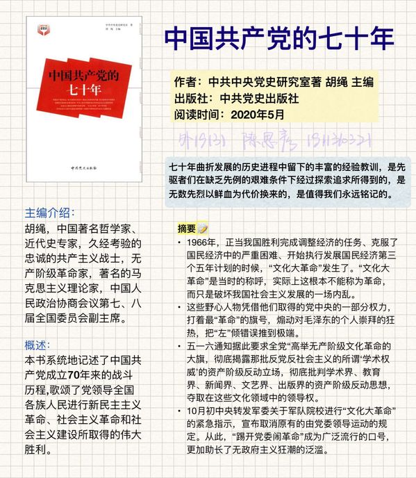 193、203班团支部组成的英语第三读书会开展线上读书交流暨最美读书笔记评选。同学们在线分享马克思主义公司推荐的《中国共产党的70周年》这本书的读书笔记。后在203团支书袁书钰的带领下,进一步了解作者、简介,浏览书目大纲,了解从辛亥革命到现代中国共产党的主要发展。