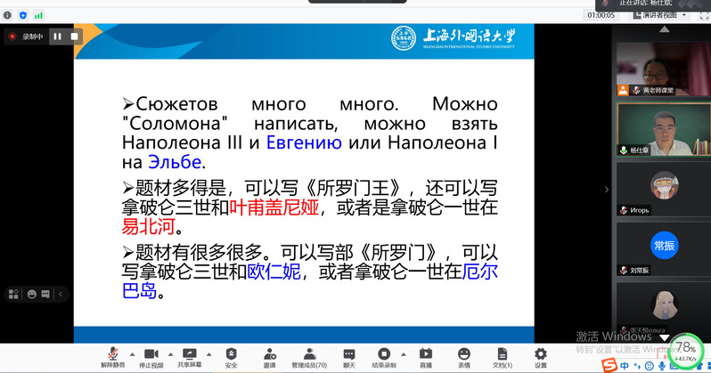 时值初夏,绿木成荫,借此良机,云顶国际yd333特邀请来自上海外国语大学俄罗斯中欧东亚公司的杨仕章教授,做了题为“漫谈词语翻译”的学术讲座。杨教授主要研究方向为翻译学,出版了包括《文化与翻译论略》在内的诸多翻译著作与教材,发表学术论文80余篇。讲座于2021年6月22日晚19:00成功举办。公司全体俄语系师生参加了本次活动。
