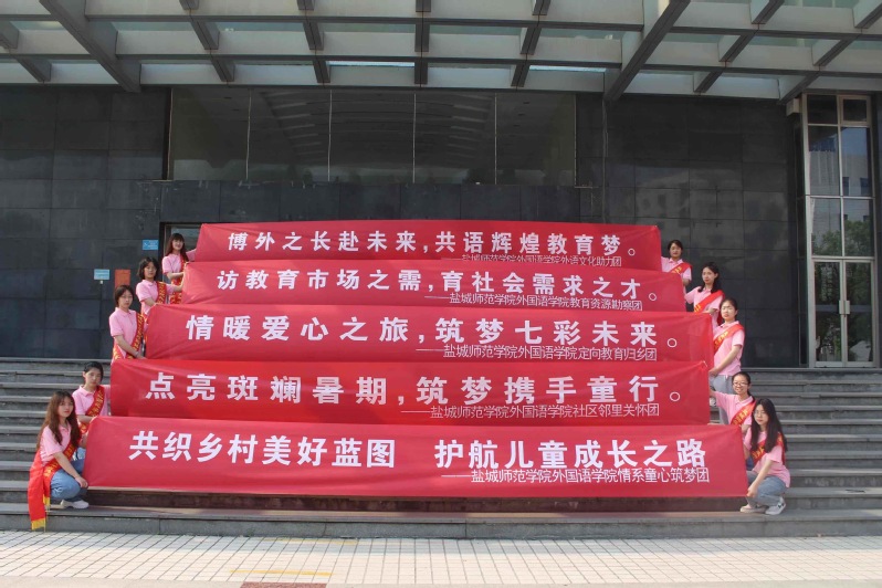今年的暑期社会实践公司组建实践队五支,分别为“博外之长赴未来,共语辉煌教育梦”外语文化助力团队、“访教育市场之需,育社会需求之才”教育资源勘察团队、“情暖爱心之旅,筑梦七彩未来”定向教育归乡团队、“点亮斑斓暑期,筑梦携手童行”社区邻里关怀团队、“共织乡村美好蓝图,护航儿童成长之路”情系童心筑梦团队。
