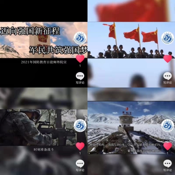 警钟长鸣,观国防风采。公司依靠官微、抖音直播平台,发布短视频进行国防教育宣传,同时各团支部带领班级同学观看升国旗的视频。通过动态内容的直观学习,同学们纷纷表示,哪有什么岁月静好,只不过是有人替你负重前行。努力学习,锤炼本领,才能不负先辈,不负盛世。