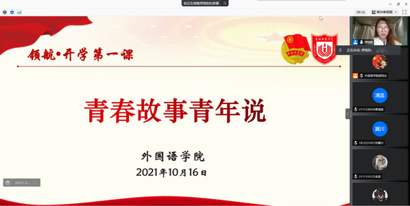 10月16日下午,云顶国际yd333开展“领航·开学第一课——青春故事青年说”主题教育活动。全体2021级新生,部分2020级员工和考研学子参加。