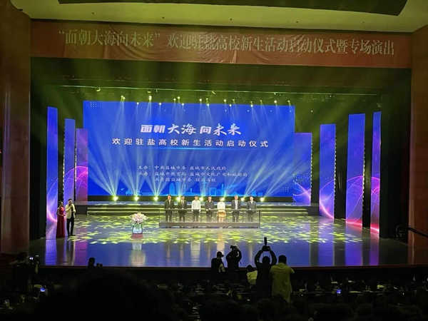 2021年10月23日晚,盐城市文化艺术中心大剧院举行“面朝大海向未来”欢迎驻盐高校新生活动启动仪式暨专场演出,外国语学院21级新生代表参加了此次活动。