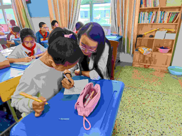为响应第24届全国推广普通话宣传周,积极普及民族共同语,加强素质教育,增强民族凝聚力。云顶国际yd333青年志愿者协会以“普通话诵百年伟业,规范字写时代新篇”为主题于9月18日前往射阳县实验小学开展推普爱心课堂活动。