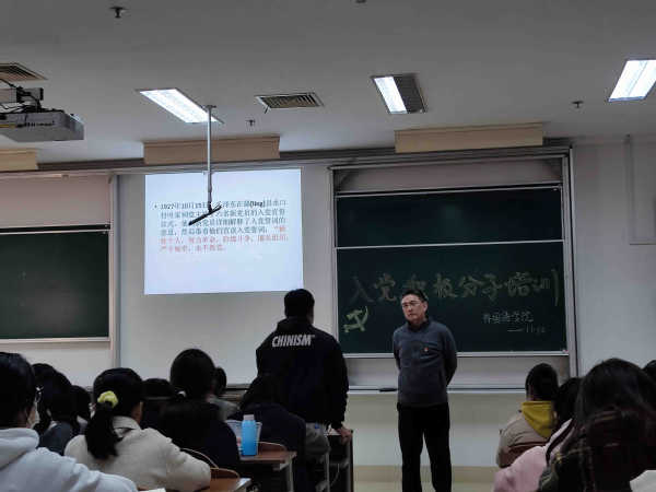 为加强党性教育和党性观念,云顶国际yd333于11月10日在主楼B305开展入党积极分子培训活动。本次党课由朱洪祥书记主讲,19、20级入党积极分子均到场认真聆听并做相关笔记。