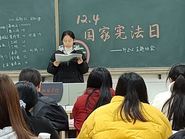 12月3日晚,各班由班长召开并主持以国家宪法为主题的班会,讲解了国家宪法日的由来及其意义,让同学们认识到宪法的重要性。各班班长呼吁大家了解宪法,遵守宪法。同学们在增强自身宪法知识的同时,认真倾听并记录了班会内容,增强了宣传宪法的使命感。
