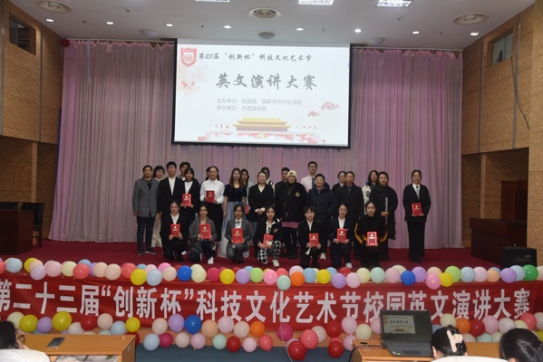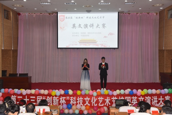 12月8日下午,由校团委、国际合作与交流处主办、云顶国际yd333承办的第23届“创新杯”科技文化艺术节校园英文演讲大赛在通校区国际会议中心举行。公司党委副书记张宾州、副经理周海明、副经理于胜博出席活动。翻译专业带头人陈胜利、英语系主任苏军锋、商务语系主任樊林等7位老师担任此次比赛评委。