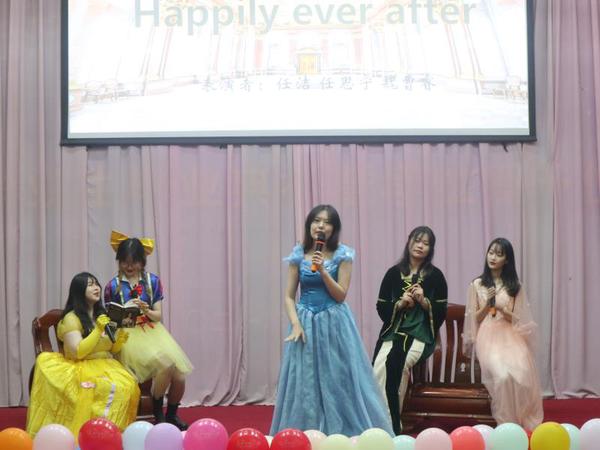《微型课堂》、《商务谈判:中新猕猴挑交易》、《同传交传展示:译言妙语》等节目展现了公司学子过硬的专业技能、娴熟的口语表达以及从容得体的言谈举止;《象帽扇子舞》、《琴韵书法》、《短句配音:美国人上法语课》、《喀秋莎》、英语歌剧《Happily ever after》、《异国服装show》等节目用别具异域特色的表演描摹不同国家的风俗逸事,引的现场观众掌声不断。此外,情景剧《抗疫社区行》用生动有趣的表演演绎了志愿者们在抗疫阻击战中的付出与奉献。