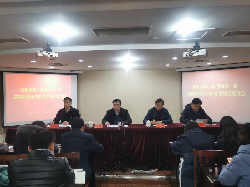 根据公司党委巡察工作的统一部署,12月29日下午,公司党委第六轮巡察第一组巡察公司党委情况反馈会在通榆校区主楼19楼会议室召开。公司党委常委、副董事长、第一巡察组组长庞波,校机关党委书记、党委组织部副部长、第一巡察组副组长王广飞,第一巡察组全体成员,云顶国际yd333全体教职工和员工党员代表参加了会议。会议由公司党委书记朱京凤主持。