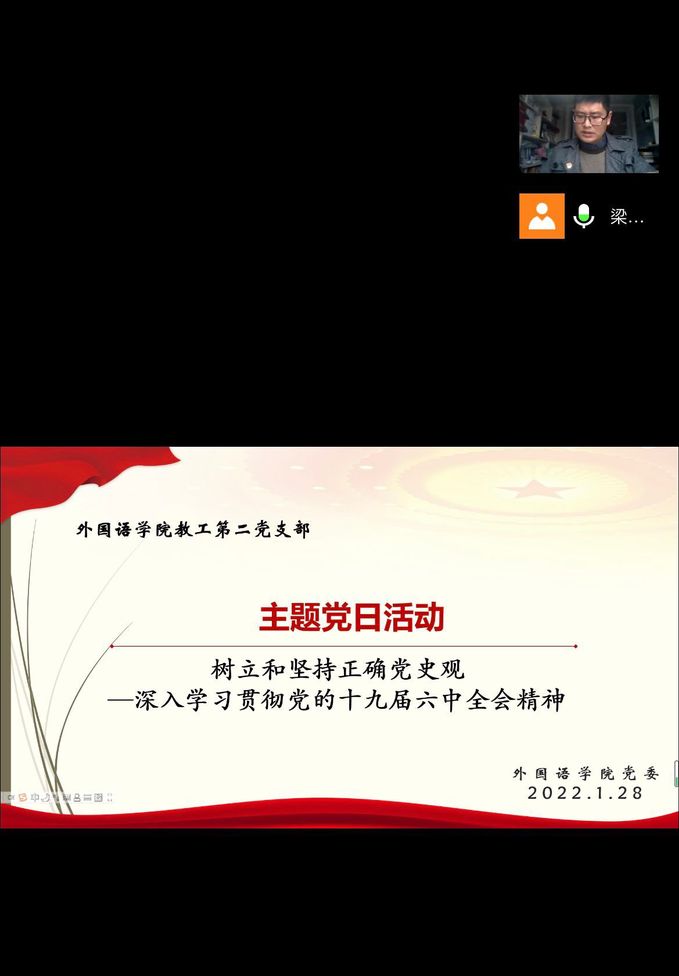 1月28日上午,教工第二党支部开展“树立正确党史观推动党史学习教育”主题党日活动,此次活动通过腾讯会议在线上进行。