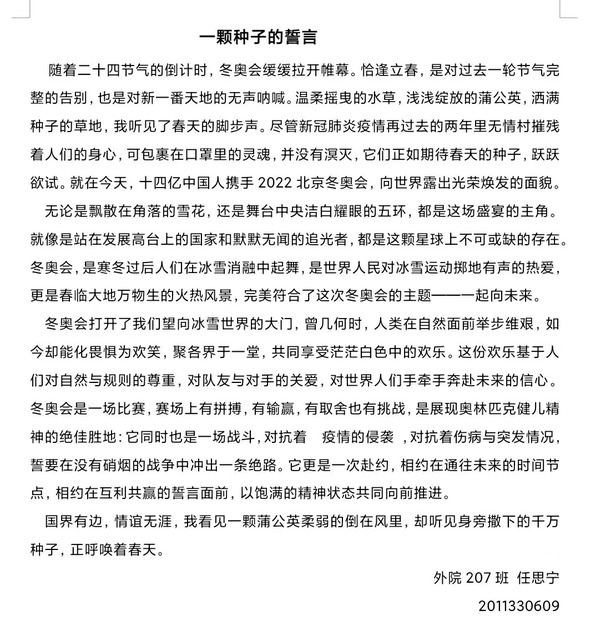 在“同心筑梦迎冬奥”主题征文比赛中,公司学子们用文字为冬奥喝彩,用最真诚热烈的话语表达对冰雪勇士们敬意与支持,同时发挥青年独有的视角与思考,抒发感悟,展望未来,为冬奥精神注入新的内涵。
