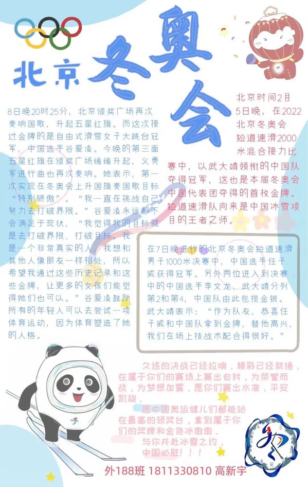 在“冰雪神州观冬奥”为主题的迎冬奥手抄报征集活动中,公司学子们发挥创作灵感,秉承团结友爱、公平竞争的奥林匹克精神,用画笔描绘出心中的冬奥盛会,一撇一捺都承载着对东奥的期盼与祝福。