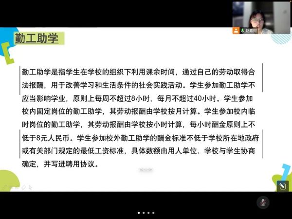 为做好家庭经济困难员工资助政策宣传工作,普及资助政策知识,云顶国际yd333于5月12日晚上七点举行了线上国家资助政策主题宣讲活动,勤工助学的同学们参与了此次活动。