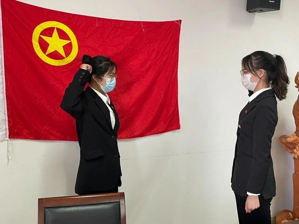 入团仪式在雄壮的国歌声中拉开序幕。主持人邓雨尧宣读了本次新团员名单,介绍了共青团的背景,带领新团员了解共青团的组成和标志。在老团员为新团员佩戴团徽后,新团员们举起右手、庄严宣誓,表达了团员们对共青团组织的无限向往,激发了每一位共青团员的光荣感和责任感。