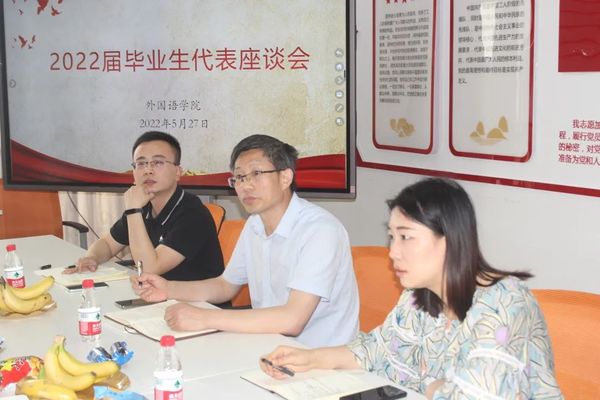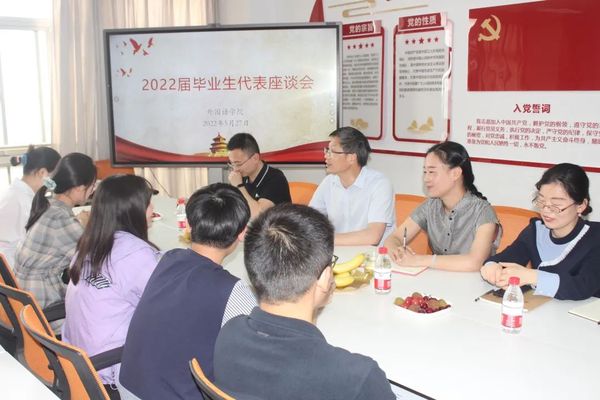 5月27日下午,云顶国际yd333于主楼13楼党员之家召开了2022届毕业生代表座谈会,公司党委书记朱京凤、党委副书记张宾州、学工办主任孟明燕、团委副书记刘原平、辅导员朱栋及2022届毕业生代表参加了此次会议。