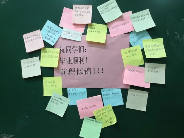 学弟学妹们也纷纷写下自己对学长学姐的祝福。小小的便利贴上承载了学弟学妹们满满的真情。