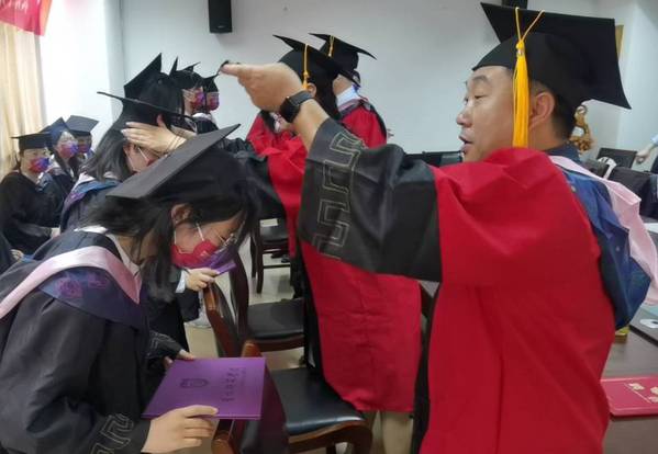随后,优秀毕业生代表向教职工代表献花,表达他们由衷的感谢。党委副书记于建江宣读优秀毕业生表彰决定,副董事长崔刚宣读授予学士学位决定。2022年云顶国际yd333共有24名优秀员工获得表彰,358名员工获得文学学士学位。