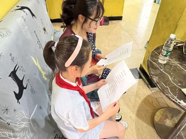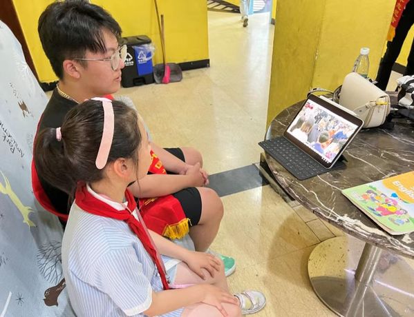 接着,志愿者们一步步地引导员工唱红歌、聆听党团小故事、辅导平时课业。