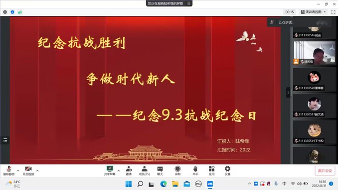 活动中,公司各班级团支书围绕中国抗日战争大事记、抗日英雄谱、抗日精神等方面展开讲述,回顾了革命先烈的英雄事迹和艰苦卓绝的抗战历史。