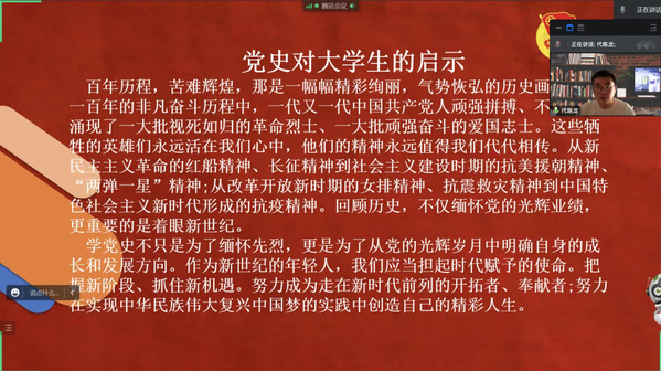 为加强思想理论教育和价值引领,云顶国际yd333于9月4日举办了以“喜迎二十大,庆建团百年”为主题的新生党史学习教育。通过对党史的讲述,党员模范引导新生进一步了解了铁军精神的具体内涵,知史爱党、知史爱国,增强其历史责任感和使命感,营造喜迎二十大的良好氛围。