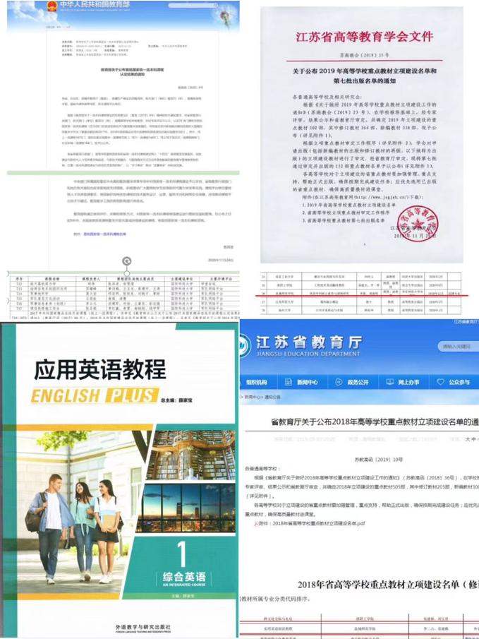 课程开发,成效显著。“英美诗歌”获批国家级一流本科课程,“美国文学”和“英语课程与教学论”获评省一流本科课程。《应用英语教程》《基于学科核心素养的英语教学课例研究》《翻译理论与实践教程》等省重点教材相继出版。成立外语类课程思政教学与研究中心,建成示范课程8门。与盐城中学等公司共建教学案例库9个,出版教材3部;与外研社、外教社等外语类权威出版社合作建成覆盖核心课程试题库8个。