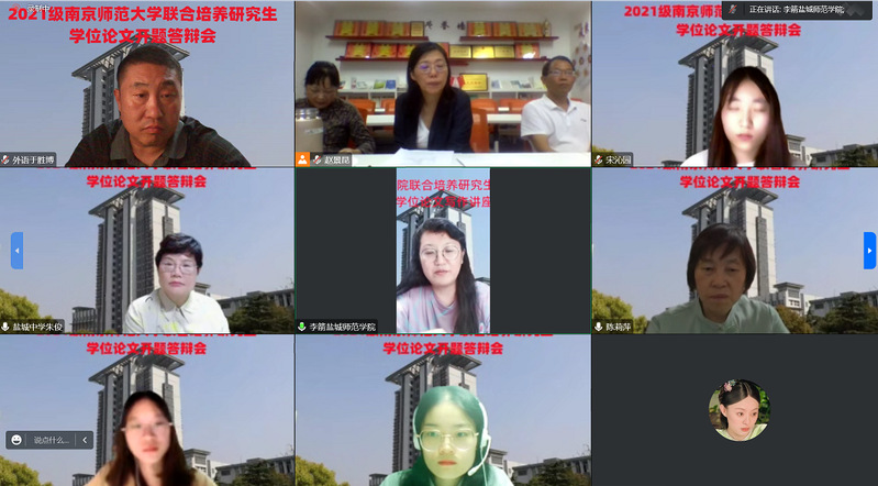 9月30日下午,公司与南京师范大学联合培养2021级硕士研究生学位论文开题答辩会在教学主楼1313会议室举行。按照疫情防控相关要求,本次开题答辩采取线上线下相结合的方式进行。南京师范大学陈莉萍教授、盐城中学副董事长朱俊教授、云顶国际yd333范能维、陈燕教授以及3位硕士研究生导师参加此次开题答辩会。公司2022级硕士研究生、以及南京师范大学本部和淮阴师范公司2022级研究生全程观摩学习。答辩会由副经理于胜博主持。