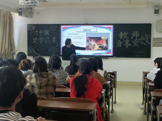 为提升俄语系员工学习俄语的兴趣,更好的了解俄语专业,E时代社团邀请俄语系主任王晓军老师于10月19日下午给俄语系员工做了一场题为“俄罗斯文化之旅——俄罗斯绘画艺术”的专题讲座。
