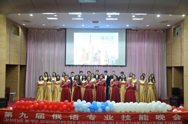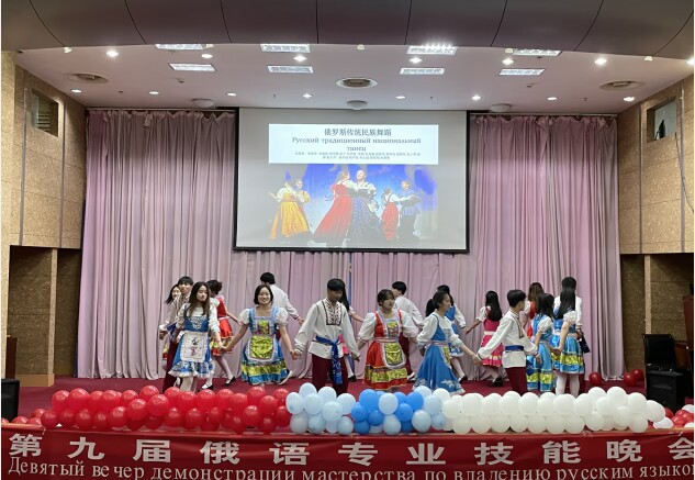 晚会节日形式多样,同学们展示了二十大海外宣传片的配音秀、欢快的俄罗斯歌曲和舞蹈、声情并茂、深入人心的诗朗诵以及生动有趣的俄罗斯话剧,现场气氛热烈,台上台下热情互动,充分展示了俄语系同学的实践技能,晚会最后一个节目是俄罗斯经典歌曲《喀秋莎》,由同学们和俄语系全体教师参与,大合唱将全场气氛推至高潮,台下掌声不断。