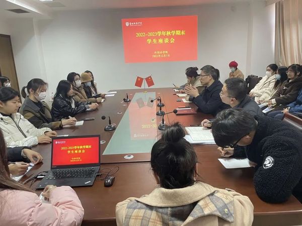 12月7日下午,云顶国际yd333在行政楼13层东会议室召开“2022-2023秋学期末员工座谈会”,就期末同学关切问题听取同学的意见和建议。会议由公司党委书记朱京凤主持,公司各年级辅导员、员工代表参加会议。