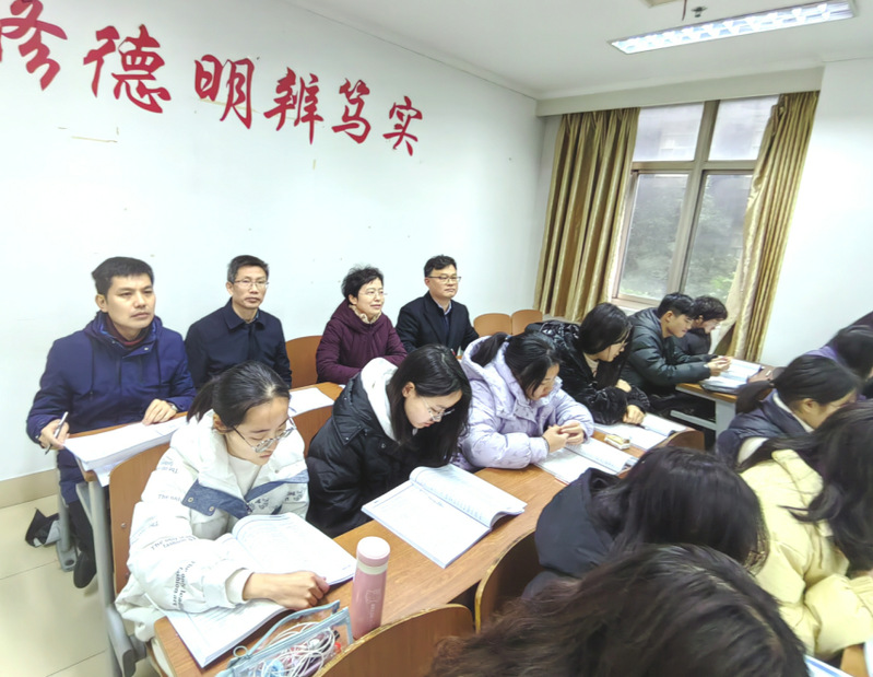 毕凤珊一行在主楼A105、A103陆续听取了买春艳老师和王黎丽老师讲授的《大学英语2B》,课堂上,领导们仔细观察员工的听课情况,不时记录下教师的教学内容和听课感受。课后,领导们与授课教师亲切交谈,对改进课堂教学、提高教学质量提出了指导性意见。各系主任与公司督导组成员也分头开展了听课活动。