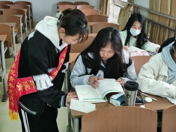 风吹轩榥,书声琅琅。志愿者踏着晨光走进英语、俄语、朝鲜语班级与22级同学进行口语学习交流。
