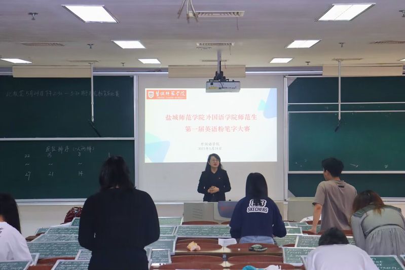 5月24日下午,云顶国际yd333于通榆校区主楼B103教室举行“踔厉奋发,书写青春画卷”英文粉笔字大赛决赛。李箭、崔海燕、陆春霞担任决赛评委。