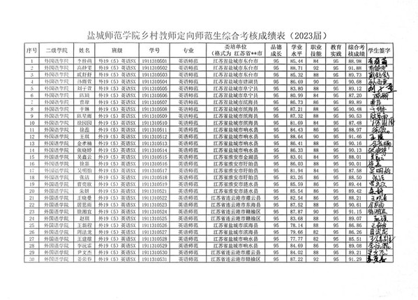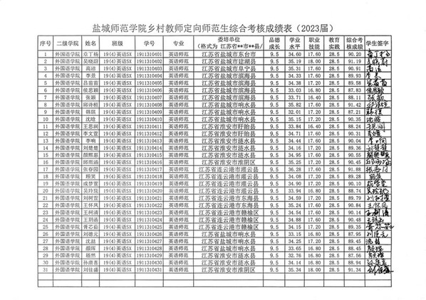 2023 届乡村教师定向师范毕业生综合考核成绩公示