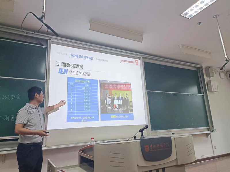 然后,梁海胜从区域优势、专业人才培养、专业技能、专业团队队伍、国际交流等几个方面介绍了朝鲜语建设历史、专业优势和取得的优异成绩。