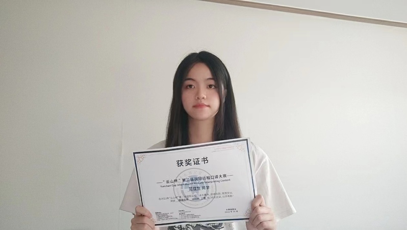 2023年7月15日,“云山杯”第二届国际远程口译大赛于线上举行。公司朝鲜语专业范佳怡选手崭露头角,脱颖而出,荣获韩语交传组初赛三等奖。