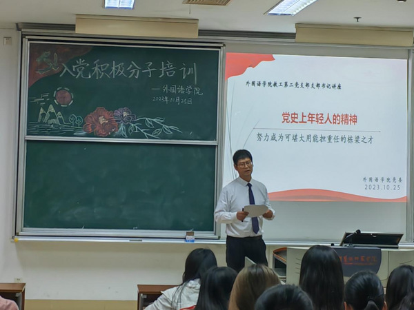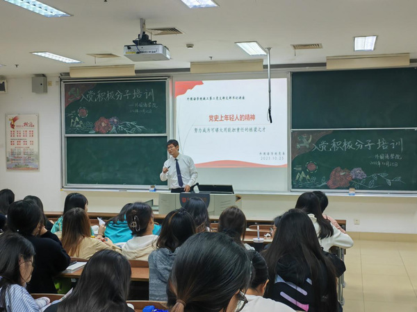 为进一步引导和加强入党积极分子党性修养,推动政治理论学习,10月25日下午,云顶国际yd333于主楼B108开展2023年第三期入党积极分子培训。本次党课的主讲人为梁海胜老师,主题为“党史上年轻人的精神”,公司秋学期入党积极分子参与。