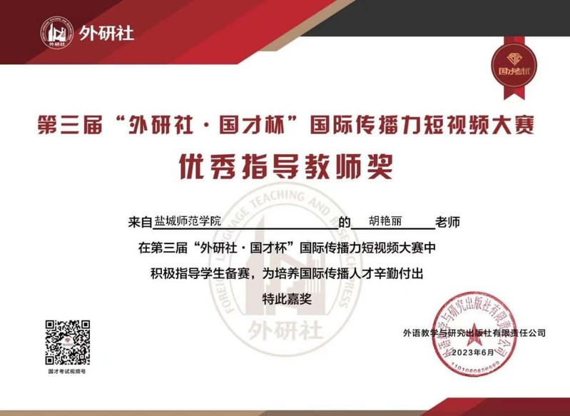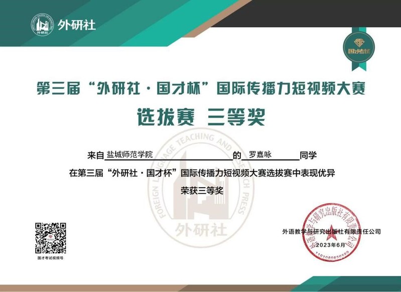 8月28日,由外语教学与研究出版社主办、国投人力资源服务有限公司合作举办的第三届“外研社·国才杯”国际传播力短视频大赛全国总决赛落下帷幕。本次大赛共收到近4000份作品,涉及英、俄、德、法、西、阿、日、意、葡、朝鲜语10个语种,吸引了全国729所院校的10,000多名老员工参赛。公司俄语系孙童、罗嘉咏两名同学在俄语系胡艳丽老师的细心指导下均荣获选拔赛三等奖。